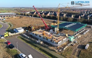 Kontinuierliche Luftbild-Aufnahmen aus verschiedenen Perspektiven dokumentieren die Entwicklung des Projekts.